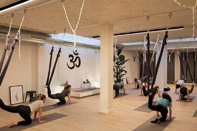 These areas are visually connected and the number of different luminaires has been reduced to only three families (Moody, Hance, and Stormbell) to achieve diverse lighting effects through the optics and accessories. Moreover, Yoga practice room, the main space, is installed with linear structures that merge into the room ceiling, parallel to the structures where “aerial Yoga” is practised.